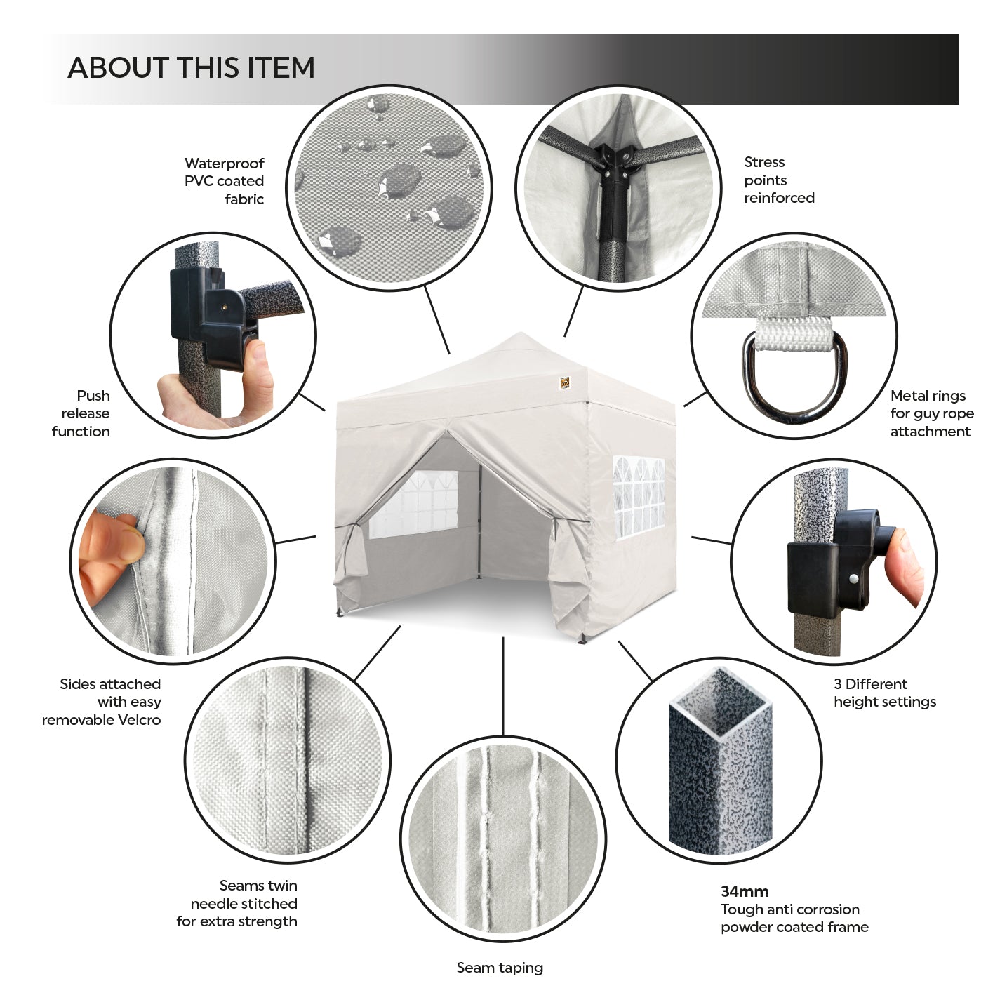 Our experience within the gazebo and tent industry means we now offer one of the best pop-up gazebos on the market. Having reverse engineered this product from the actual bag it fits in, to the frame and canopy. We have built strength and reliability into all of the construction and features.